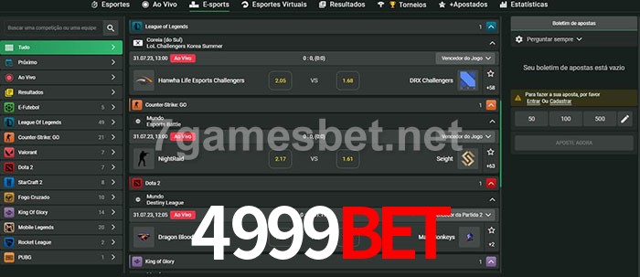 O 4999bet oferece uma grande seleção de opções de apostas em e-sports com probabilidades competitivas